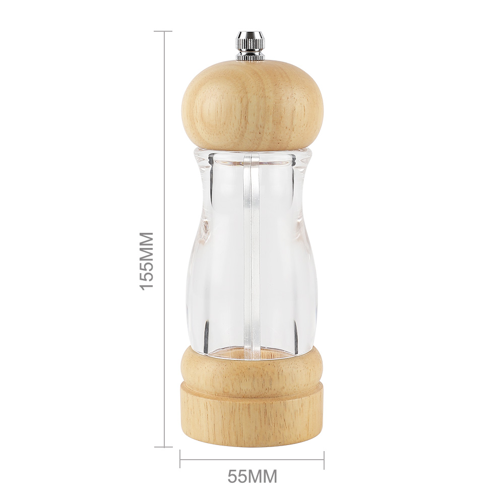 Key Attributes Model Number:SPG024 Number of Pieces: 1pc Mills Type:Salt & Pepper Mills Material:Rubber Wood + Acrylic Operation Mode:Rotary Knob Care Instructions:Hand Wash Only Use Way:Manual Packaging: Gift box or as client's requirement Logo: Accept Customized logo Brand Name: Koey OEM/ODM: Highly Welcomed Sample Time: 5-7days FOB Port:Shenzhen/Guangzhou
