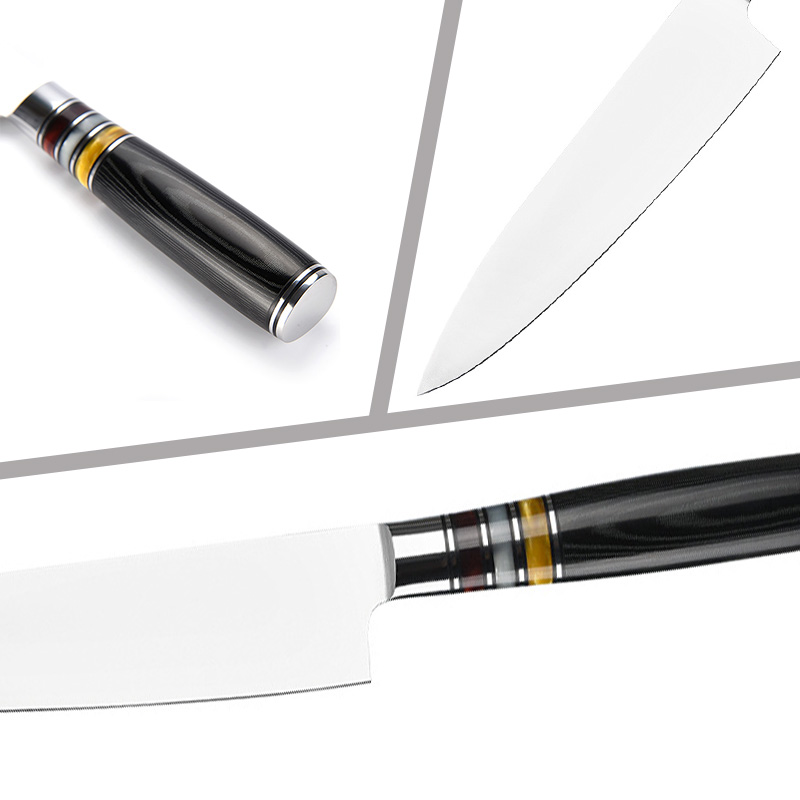 Key Attributes Model Number: KF037C Number of Pieces: 1pc Blade Material: 3cr13,4cr13,5cr15mov ,7cr17mov,9cr18mov Handle Material: 430 Stainless Steel + Pakka Wood Blade Length: 8in Packaging: Gift box or based on client's requirement Logo: Accept Customized logo Brand Name: Koey OEM/ODM: Highly Welcomed Sample time: 5-7days FOB Port:Shenzhen/Guangzhou
