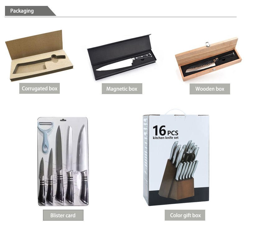 Key Attributes: Model Number: KF022 Number of Pieces: 7pcs Blade Material: 67 layers VG-10; Blade Hardness: 58-62 HRC Handle Material: Pakka Wood Blade Length: 3.5-8in Packaging: Gift box, Color box or based on client's requirement Logo: Accept Customized logo Brand Name: Koey OEM/ODM: Highly Welcomed Sample time: 5-7days FOB Port:Shenzhen/Guangzhou