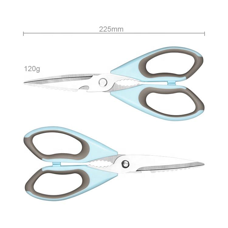 | Kitchen scissors | Blade: 2cr13/2c14/3cr13/3cr14 stainless steel Handle: PP + TPR | 225mm | 2.2mm | 120g |