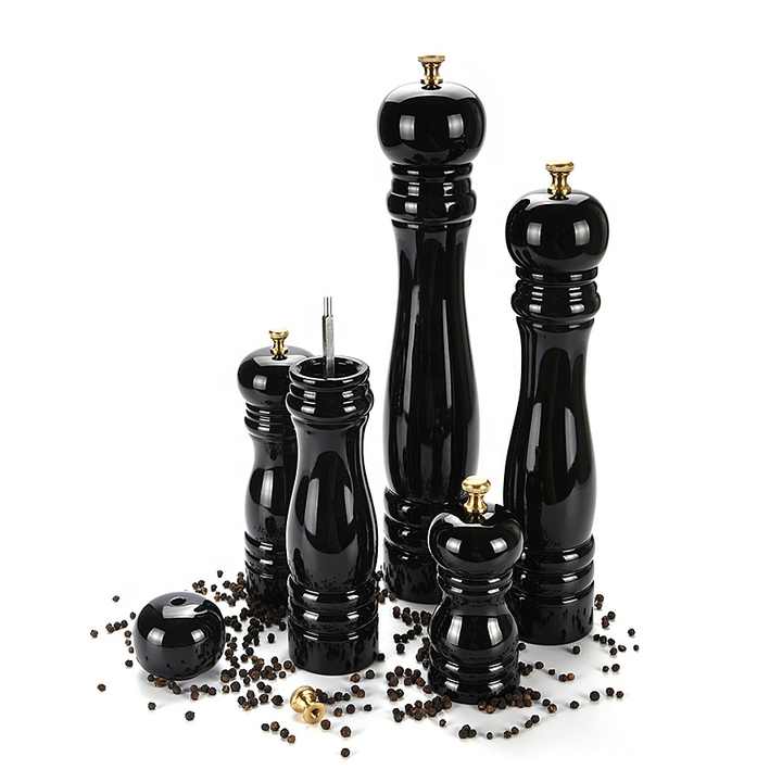 Key Attributes Model Number:SPG034 Number of Pieces: 5pcs Mills Type:Salt & Pepper Mills Material:Rubber wood + Black PU painting Operation Mode:Rotary Knob Care Instructions:Hand Wash Only Use Way:Manual Packaging: Gift box or as client's requirement Logo: Accept Customized logo Brand Name: Koey OEM/ODM: Highly Welcomed Sample Time: 5-7days FOB Port:Shenzhen/Guangzhou