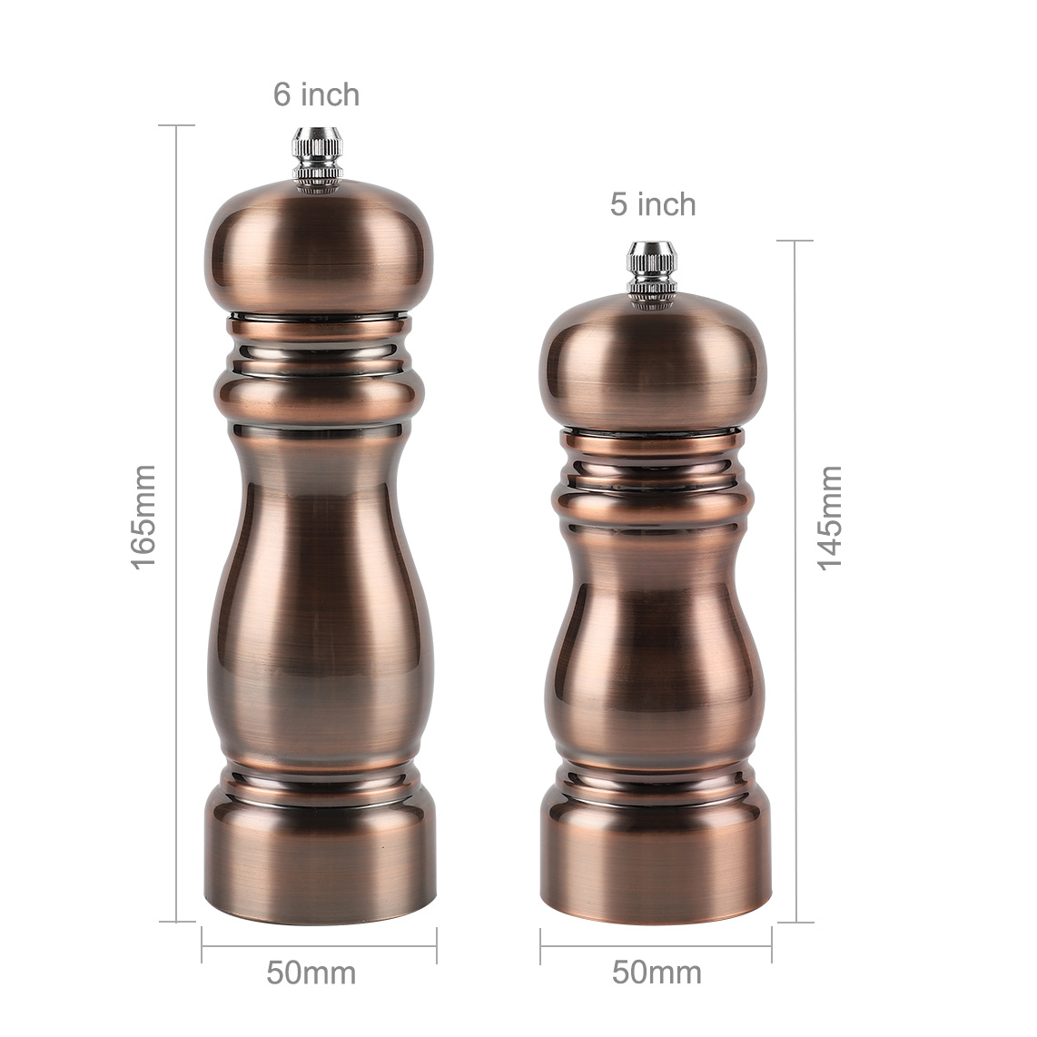 Key Attributes Model Number:SPG027 Number of Pieces: 2pcs Mills Type:Salt & Pepper Mills Material:ABS with copper plating + ceramic+S/S Core Operation Mode:Rotary Knob Care Instructions:Hand Wash Only Use Way:Manual Packaging: Gift box or as client's requirement Logo: Accept Customized logo Brand Name: Koey OEM/ODM: Highly Welcomed Sample Time: 5-7days FOB Port:Shenzhen/Guangzhou