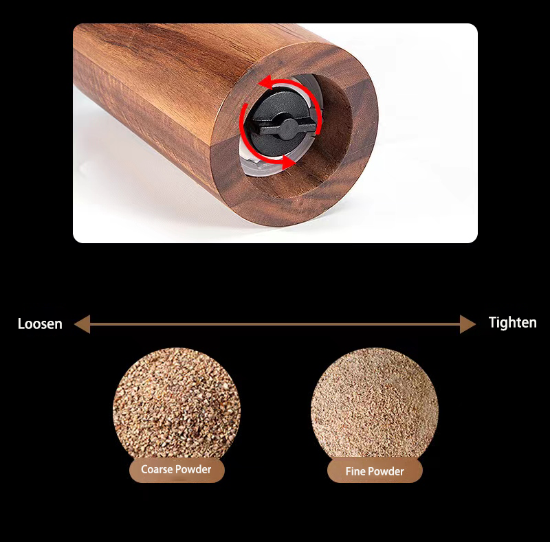 Key Attributes Model Number:SPG069 Number of Pieces: 1pc Mills Type:Salt & Pepper Mills Material:Acacia Wood Operation Mode:Rotary Knob Care Instructions:Hand Wash Only Use Way:Manual Packaging: Gift box or as client's requirement Logo: Accept Customized logo Brand Name: Koey OEM/ODM: Highly Welcomed Sample Time: 5-7days FOB Port:Shenzhen/Guangzhou