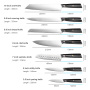 | Details | 10 Inch Gyuto Knife 9.5 Inch Carving Knife 9.5 Inch Bread Knife 8 Inch Chef Knife 7 Inch Santoku Knife 6 Inch Nakiri Knife 6 Inch Boning Knife 5 Inch Utility Knife 4 Inch Paring Knife |
