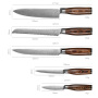 Key Attributes: Model Number: KF055 Number of Pieces: 6Pcs Blade Material: 67 layers VG-10; Blade Hardness: 58-62 HRC Handle Material: Pakka Wood Blade Length: 3.5-8in Packaging: Gift box, Color box or based on client's requirement Logo: Accept Customized logo Brand Name: Koey OEM/ODM: Highly Welcomed Sample time: 5-7days FOB Port:Shenzhen/Guangzhou
