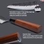 | 7" Santoku Knife | Blade size: 182*44*2.8mm Whole size: 312mm Weight: 184g | 9Cr18MOV stainless steel | 2.8mm | Ebony + rosewood | Natural wood color |