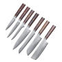 Key Attributes: Model Number: KF018 Number of Pieces: 7Pcs Blade Material: 67 layers VG-10; Blade Hardness: 58-62 HRC Handle Material: Rose Wood Blade Length: 3.5-8in Packaging: Gift box, Color box or based on client's requirement Logo: Accept Customized logo Brand Name: Koey OEM/ODM: Highly Welcomed Sample time: 5-7days FOB Port:Shenzhen/Guangzhou