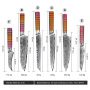 Key Attributes: Model Number: KF018 Number of Pieces: 7Pcs Blade Material: 67 layers VG-10; Blade Hardness: 58-62 HRC Handle Material: Rose Wood Blade Length: 3.5-8in Packaging: Gift box, Color box or based on client's requirement Logo: Accept Customized logo Brand Name: Koey OEM/ODM: Highly Welcomed Sample time: 5-7days FOB Port:Shenzhen/Guangzhou